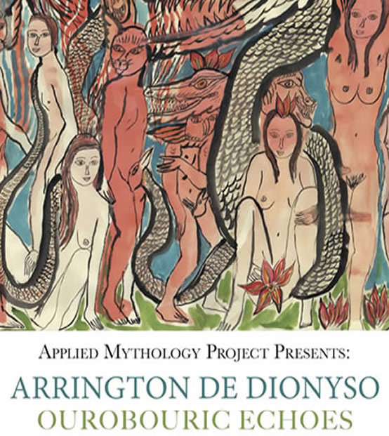 From punk venues in LA to the runways of Paris to the slums of Bangladesh, artist and musician Arrington de Dionyso’s bold imagery has been invoking mythological beings and dream states across the globe. After nearly twenty years of creating album covers, zines, and concert posters, his “Angels and Dragons in Deep Conversation” found themselves in collaboration with Saint Laurent last Spring. Recently, his interest in sustainable, equitable fashion design and production has led him to artisan cooperatives in Southeast Asia, where he is currently working in collaboration with artists from the region. This Spring, his lions, dragons and "Priapic Maenads" visit Los Angeles for a month-long celebration in OUROBOURIC ECHOES.