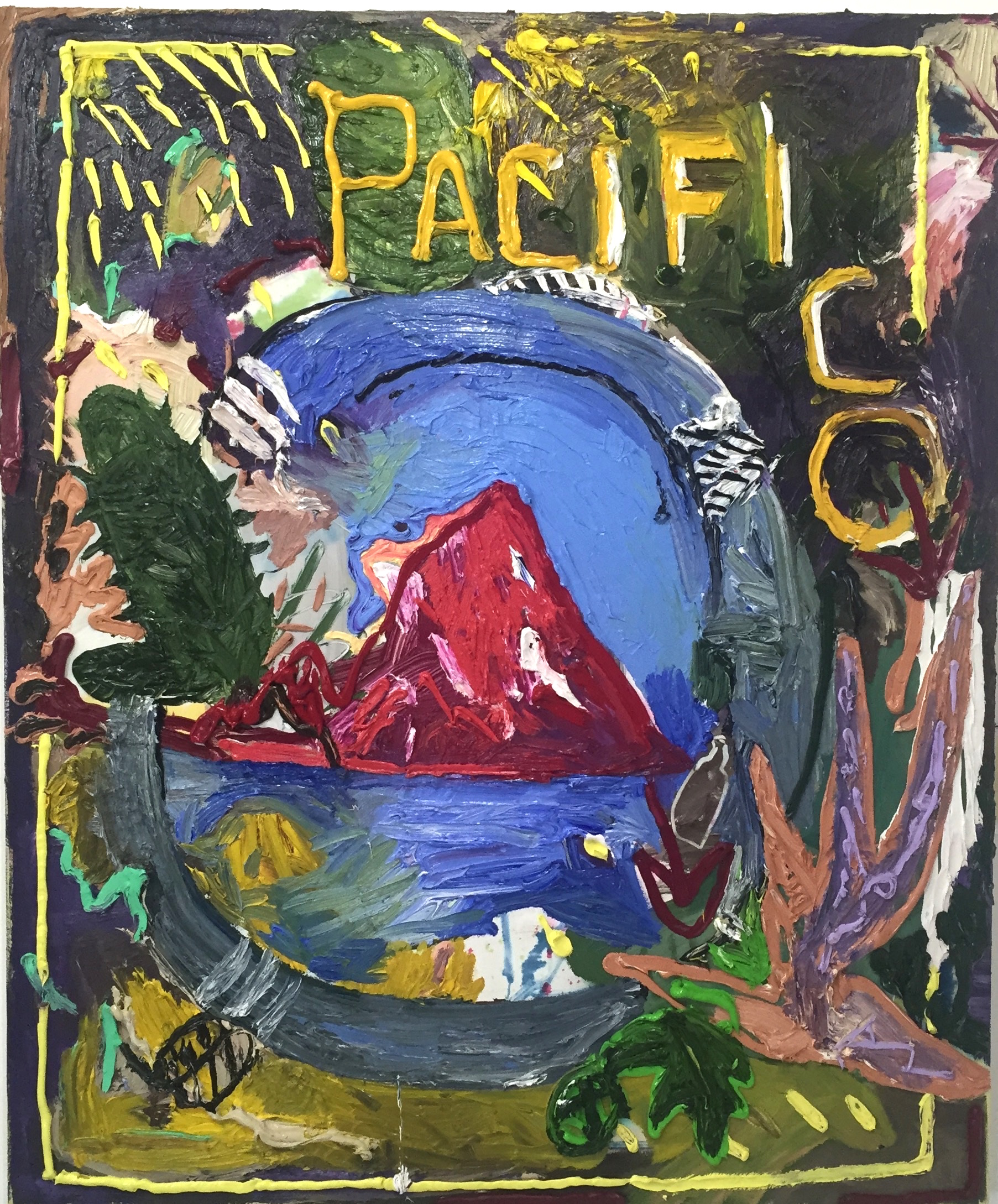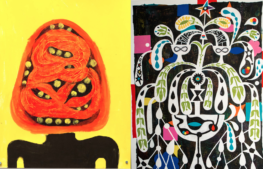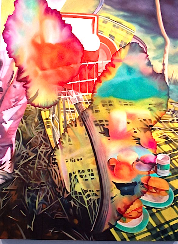 Kyle Ranson,Spaghetti & Peas, acrylic & gesso,19x24" 2015       Jovi Schnell, Night Song, acrylic guache & flashe,30x19" 2015