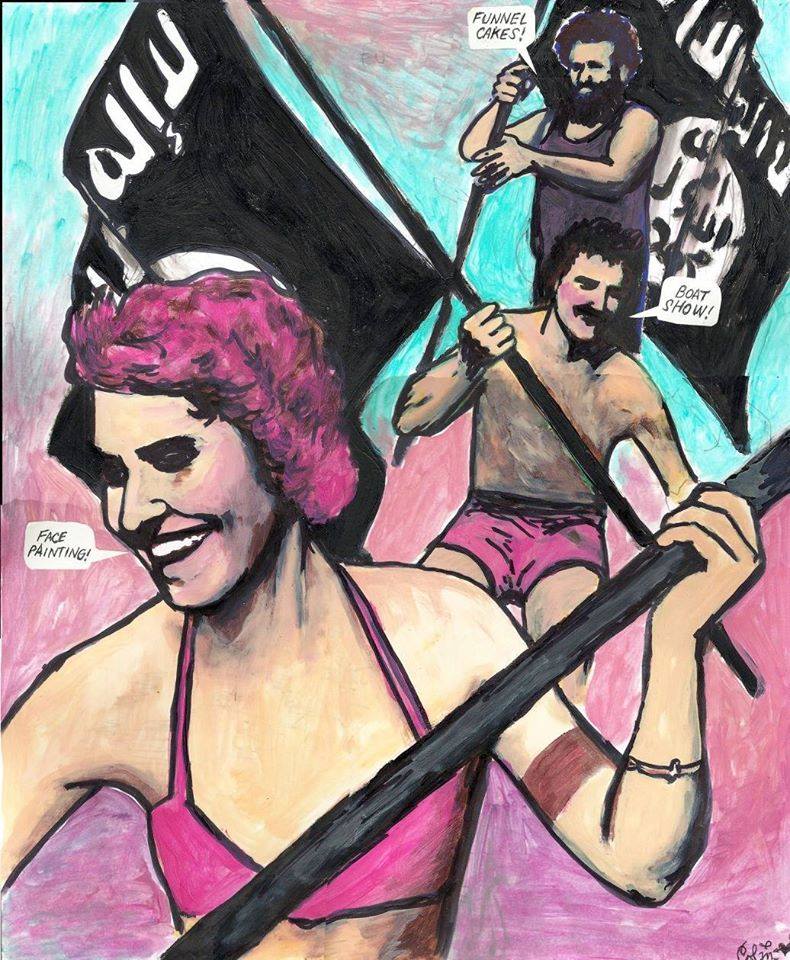 They employ black humor, feminist art tactics, slapstick, and other methods of resistance, impulsively, compulsively, and convulsively.