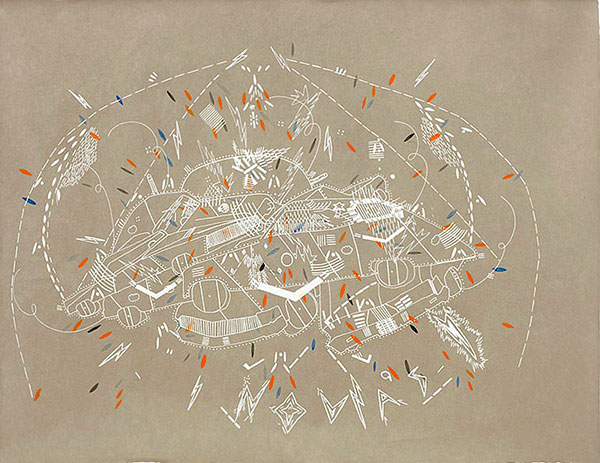 Arrington De Dionyso, Untitled, 2015, acrylic ink, 17x22 "