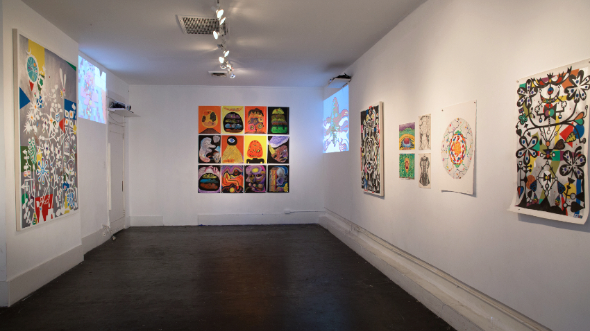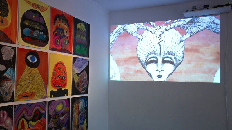 a three person show of paintings, drawings and animation: