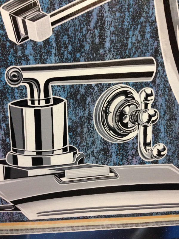 "Veronica De Jesus makes paintings that look like mechanical drawings or etchings but are at the same time spiritual and psychedelic. They resemble what a groovy Inter-dimensional spirit craft would look like if plans were drawn by Renault designers or General Motors. Thats what I really love about them is that they are actual cars that have existed in the world and hold a personal value to the artist. The artist travelled in every sense of the term, in these crazy contraptions. These are the spirit crafts from her own life. - Andrew Wingler